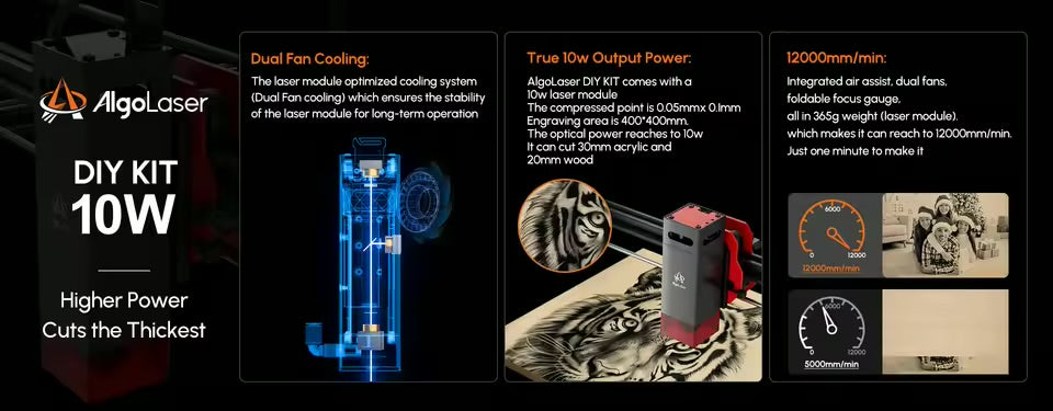 The AlgoLaser DIY KIT provides a versatile and powerful solution for all your engraving and cutting needs. With outputs of 5W or 10W, this mini desktop laser engraver is compatible with a variety of materials including metal, acrylic, plastic, leather, glass, wood, and paper. Upgrade your DIY projects with precision and ease.