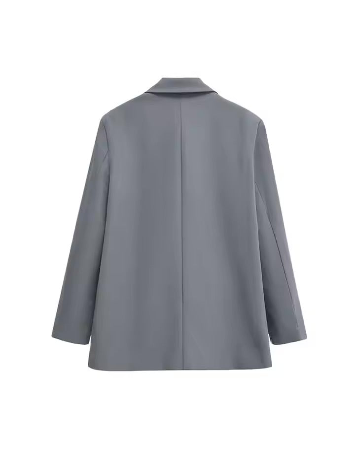 Women's Double Breasted Office Wear Blazer Coat, Long Sleeve, Flap Pockets, Female Outerwear, Chic Tops, Fashion