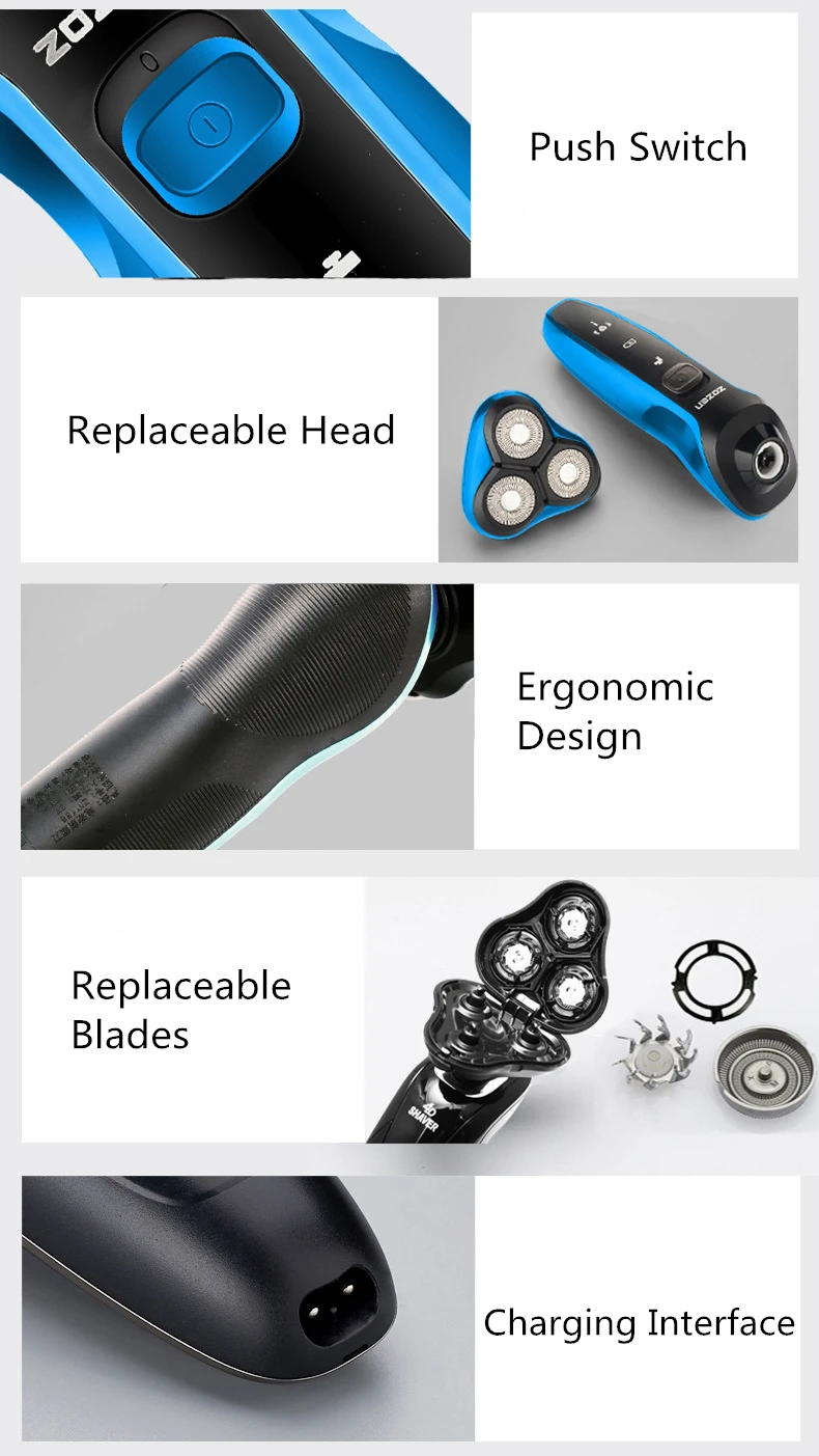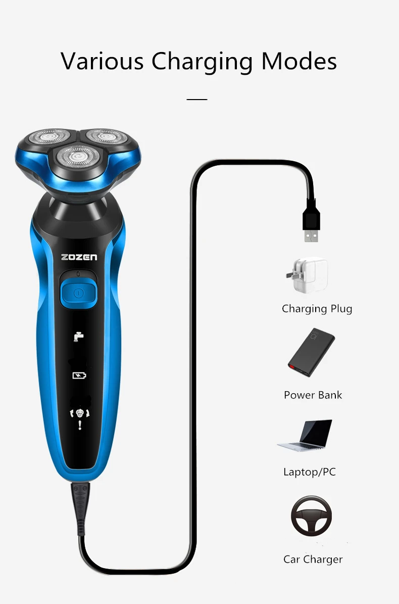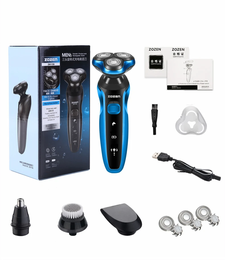 ZOZEN Electric Shaver Rechargeable Electric Razor Shaving Machine Cleaning Beard Razor for Men Wet and Dry Use Washable ZN1159